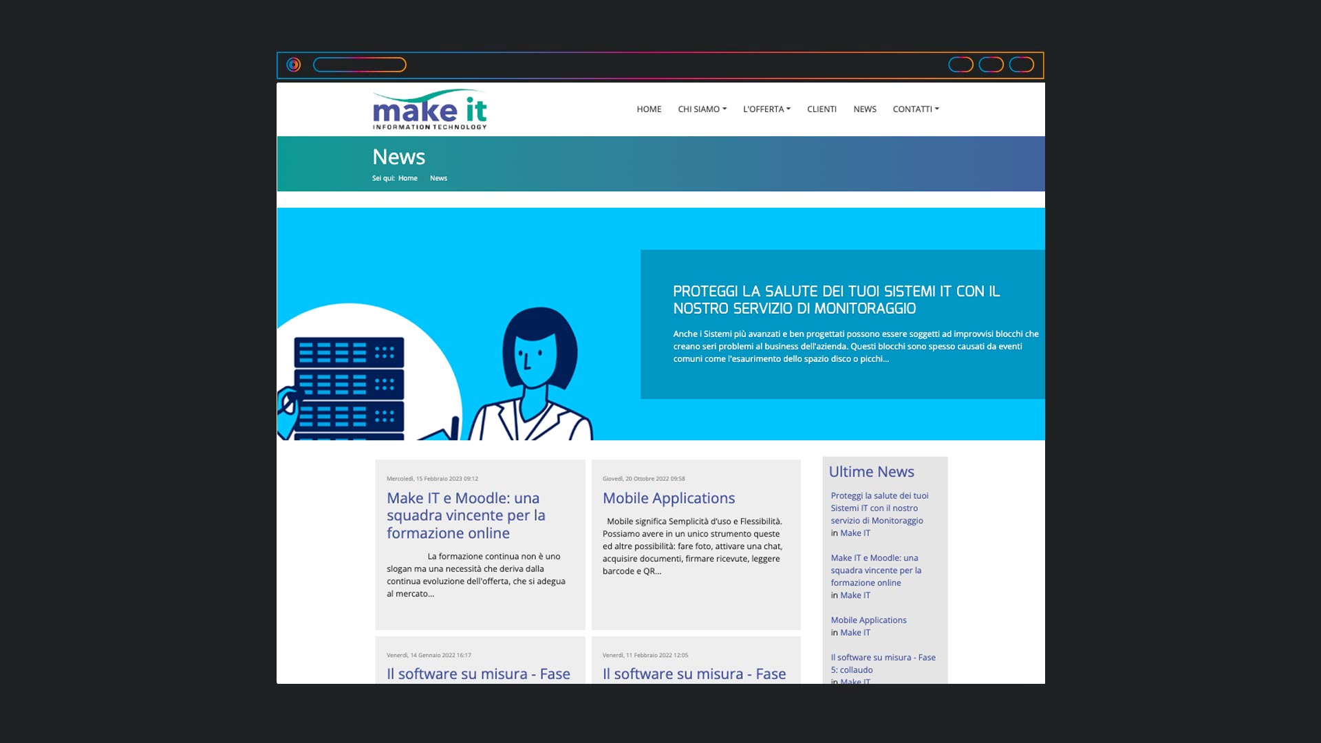 Nella home del website Make it comunica già affiancamento, fiducia, assistenza e lavoro in team. Nel sito troveremo news, pagine di prodotto, presentazioni dei servizi, case history e altro ancora.